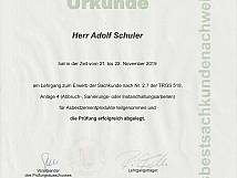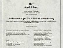 Unser Technischer Leiter/Betriebsleiter Ade Schuler ist seit 1989 als Mitglied und Meister in der Handwerkskammer Unterfranken eingetragen. Gerade in der Altbausanierung maßgeblich, konnte er neben einer Vielzahl an Schulungen und Weiterbildungen folgende Zertifizierungen erfolgreich und für das Unternehmen sehr wichtig, abschließen: